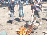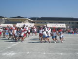 待ちに待ったグラウンドが完成し、大運動会が行われました。高学年の団体種目の騎馬戦では、グラウンドを走り回り、がんばりました。他にも、係の仕事や、会場準備・後片づけと、一人一人が、力を発揮した1日でした。 |