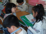 ピアサポートトレーニングの最後は、「新1年生のために、6年生とし何をしてあげられるだろう。」という話し合いでした。たくさんのアイデアの中から、『本を読んであげたい』『折り紙を教えたい』『一緒に遊んであげたい』を選びました。1年生が喜びそうな本を選んで読み聞かせの練習をしたり、遊びに使うカードにかわいい絵を描いたり、1年生を思いうかべながら準備を始めました。 6年生になる心構えができた5年生です。 |