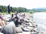 理科「流れる水の働き」の学習のため、胎内川の上流から下流まで見学に行きました。上流のごろっとした石が、下流に行くに従って小さくなっていく様子や、流れの速さを実際に見ることができました。 |