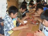 佐渡の赤土は、昔薬にもなったそうです。一人ひとりが思い思いに作品を作りました。「私は、湯呑を。」「僕は、お皿を。」と、赤土と格闘です。「思いどおりの形になってよ。」と願いながら真剣に取り組んだ表情は、小さな芸術家みたいでした。ちょっとしたゆがみや、指のあとも世界に一つの自分だけの印です。出来上がりを楽しみです。 |