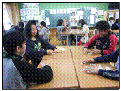 雨の日や、外遊びができないときには、何をして遊んだらいいの?そんな1,2年生のために、6年生はがんばりました。1,2年生が夢中になって遊んでくれそうな新しい遊びを考えて一生懸命に教えてあげました。遊びを考えるのは、大変だったけど、1,2年生が喜んでくれる姿を見て、苦労も忘れるほどうれしかった6年生です。 |