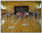 6送会のふれあい習慣が始まり、6年生と他学年との交流会が行われています。今日は、1年生と6年生。明日は、2年生と、その次は3年生・・・という具合に進みます。今日の遊びは、仲間作りゲームと大判カルタゲーム。大判のカルタを、1年生と6年生が手をつないで「よーいドン!」で探しにいきます。たかがカルタされどカルタ。大きさややり方を工夫すると、楽しいものですね。1年生と6年生が手をつないだ姿は、何ともほほえましい風景でした。 |