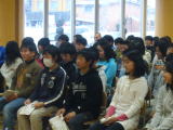 全校朝会で、校長先生は、私たちの頭の中にある「脳」に関するお話をしました。 「私たちの頭の中にある脳は硬い頭がい骨で大切に守られています。テレビゲームをやり過ぎると、だんだんと考える力がなくなってしまいます。仲間と一緒に体を動かす遊びが、脳にはとてもいいそうです。」 |
