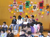 これまで、全校のリーダーとして様々な場面で活躍してきた6年生に感謝の気持ちを表そうと、6年生を送る会を行いました。5年生が中心となって、計画を立てて、運営しました。 6年生一人一人が自己アピールしながら登場する第1部で、「6年生を送る会」が幕を開けました。 第2部では、6年生の1年間の歩みを、有志の在校生が寸劇で表現しました。陸上大会や運動会、桜っ子ウォークラリーなど、6年生にお世話になった場面を再現した寸劇は、大いに会場を沸かせました。第2部の最後には、全校合唱「世界にひとつだけの花」が体育館中に響き渡りました。 そして、会を締めくくる第3部、ペンライトを使った「キャンドルサービス」がが、幻想的な雰囲気で行われました。6年生から5年生に、「責任」「協力」「友情」「努力」「奉仕」「挑戦」の「6つの火」が引き継がれました。 |