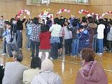 音楽朝会では、列になって前後の友達同士で肩をたたき合うリズム遊びを行いました。 その後、1月の歌「歌よありがとう」を歌いました。体育館中に歌声が響き合いました。 |