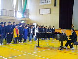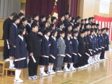 音楽朝会では、2月の歌「大空がむかえる朝」を歌いました。この歌は3月24日に行われる卒業式で、在校生が卒業生に贈る合唱曲です。1〜3年生が上のパート、4,5年生が下のパートを歌いました。 その後、全校で加治川小学校の校歌を歌いました。 |
