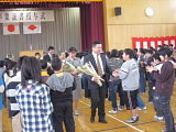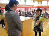 3月いっぱいで加治川小学校を離任する5人の職員の離任式が行われました。 代表の児童から、職員一人一人にお別れの言葉と花束が贈られました。異動される皆さん、新天地での御活躍をお祈りしています。 |